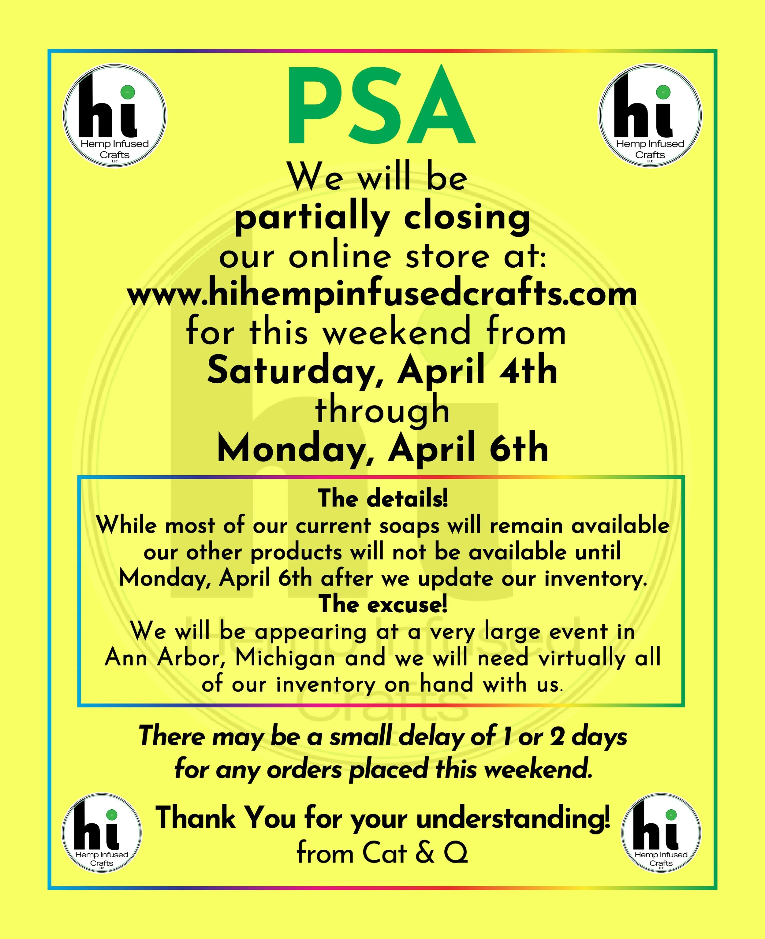 At Hi Hemp Infused Crafts, we celebrate the artistry of handmade creations. Each soap and candle is a one-of-a-kind experience, crafted with care and infused with natural goodness. Once they’re gone, they’re gone! But there's no need for concern – we’re dedicated to restocking our beloved balms, salves, and the classic unscented “The Bar” soap regularly.