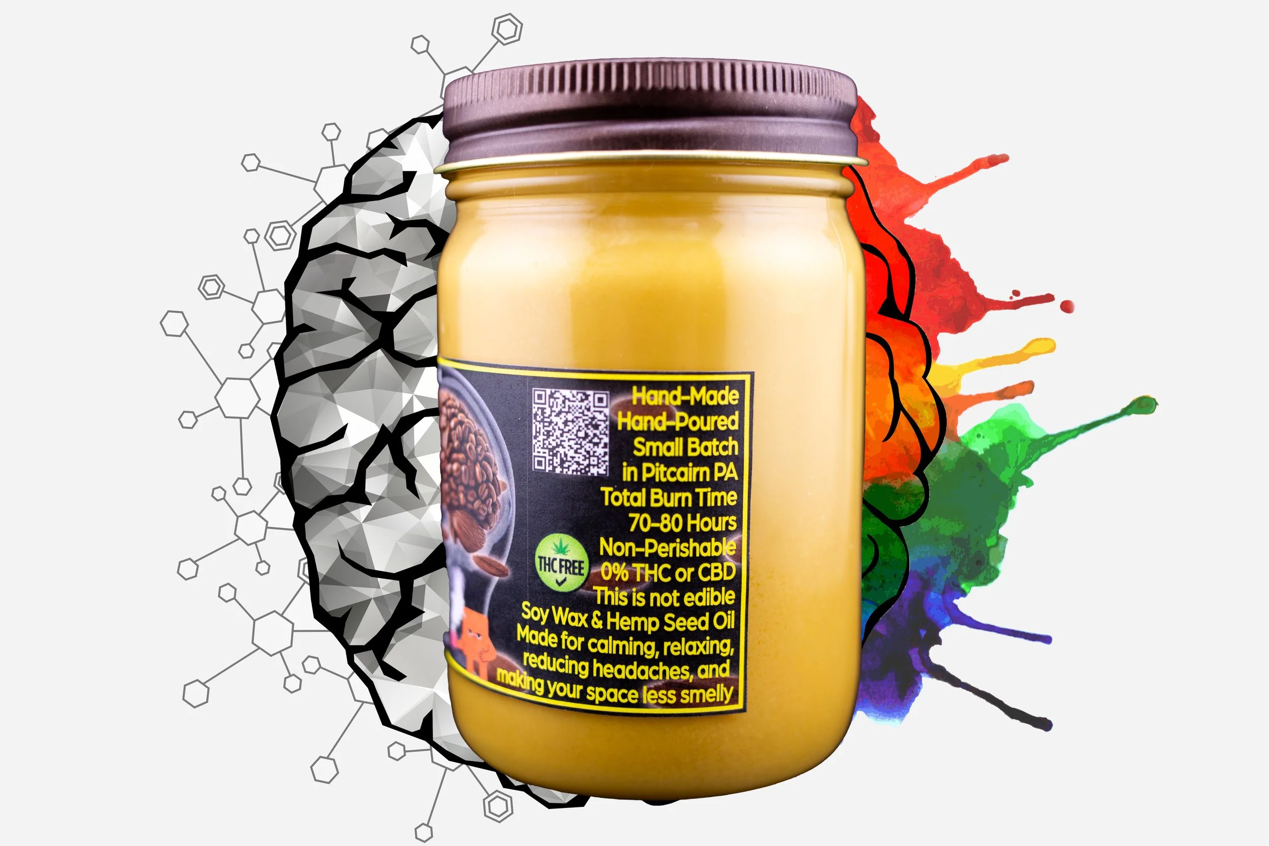 100% Soy wax infused with Hemp seed oil which is calming, relaxing, reduces headaches, and is family-friendly!